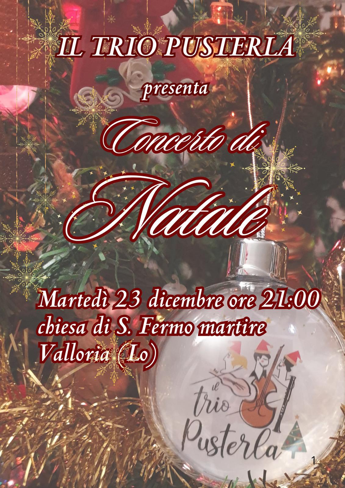 Martedì 23 dicembre, alle ore 21:00, presso la Chiesa di Valloria si terrà un Concerto di Natale con il Trio Pusterla. L'ingresso è libero.