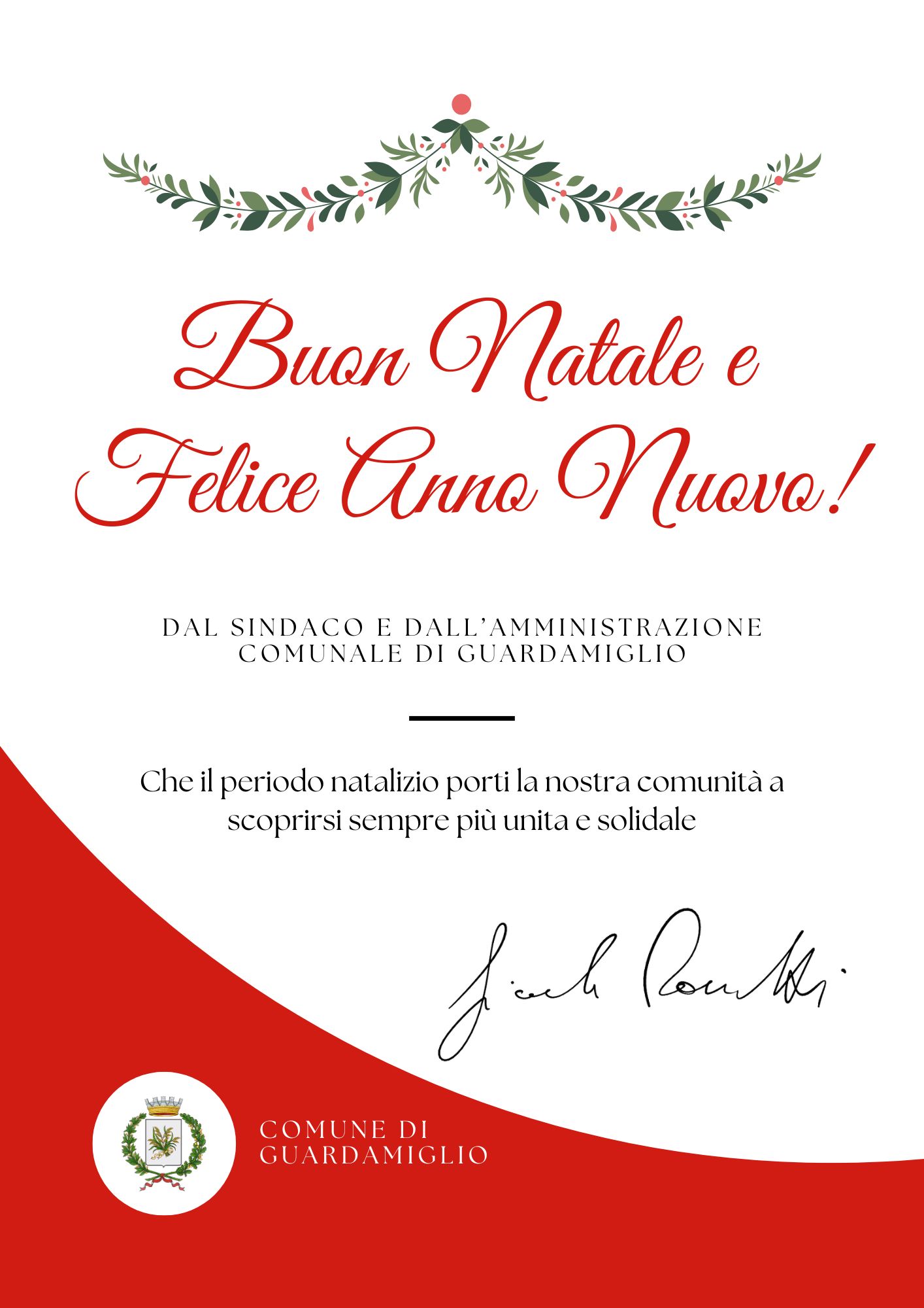 Il Sindaco e l'Amministrazione comunale tutta augurano Buon Natale e Felice Anno Nuovo a tutta la cittadinanza, con l'augurio che il periodo natalizio porti la nostra comunità a scoprirsi sempre più unita e solidale.